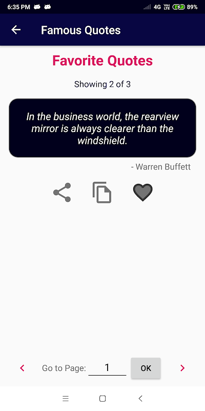 em todo o mundo, também tem mais de 100 categorias para ler. Você tem a opção de salvar suas citações favoritas e também pode compartilhar a citação que você gosta com seus amigos. Mais de 100 categorias como dinheiro, amor, casamento, vida, etc., citações de pessoas famosas como Abdul Kalam, Abraham Lincoln, Warren Buffett, etc., navegação fácil entre aspas - deslize, clique, vá para, etc.,