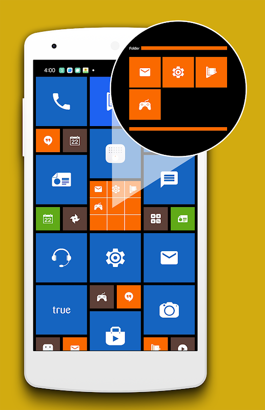 O Launcher fornece uma maneira muito fácil de criar uma pasta, basta arrastar um bloco para outro. o usuário também pode adicionar mais aplicativos à pasta soltando um bloco na pasta.