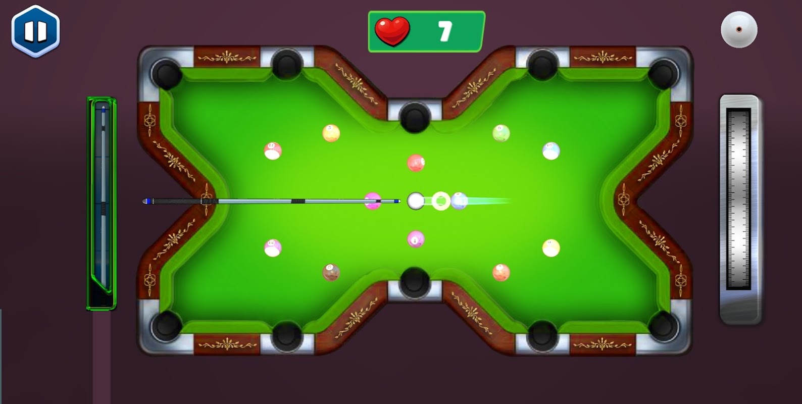 Desafie seus amigos para partidas ou jogue contra jogadores de IA no melhor jogo de sinuca.
