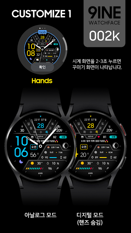 Sobre este 9INE 002k: 한글 하이브리드 워치페이스