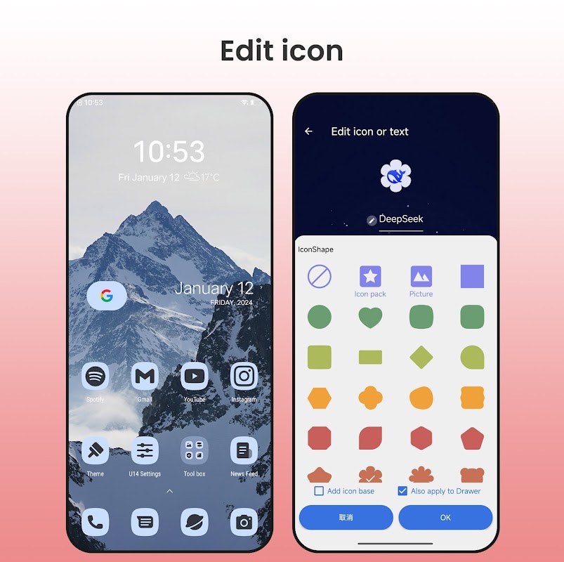 + O Like Launcher pode unificar todos os ícones em vários formatos, como o formato do Galaxy S25, formato do iOS, formato redondo, etc., MUITO LEGAL.