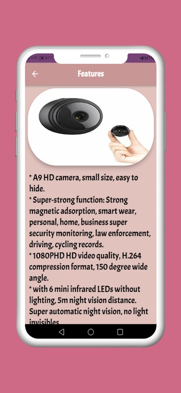 O aplicativo de mini câmera wifi A9 fornecerá as especificações e fotos da mini câmera wifi A9