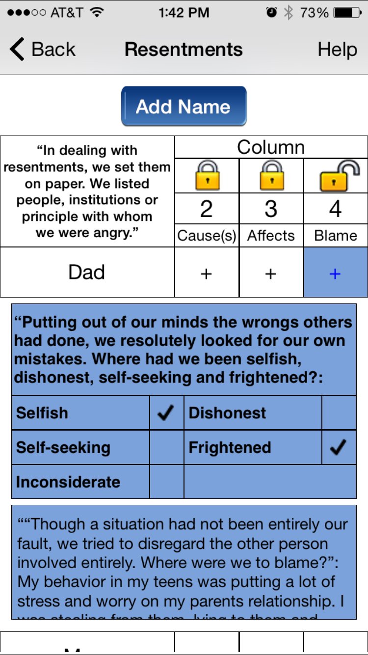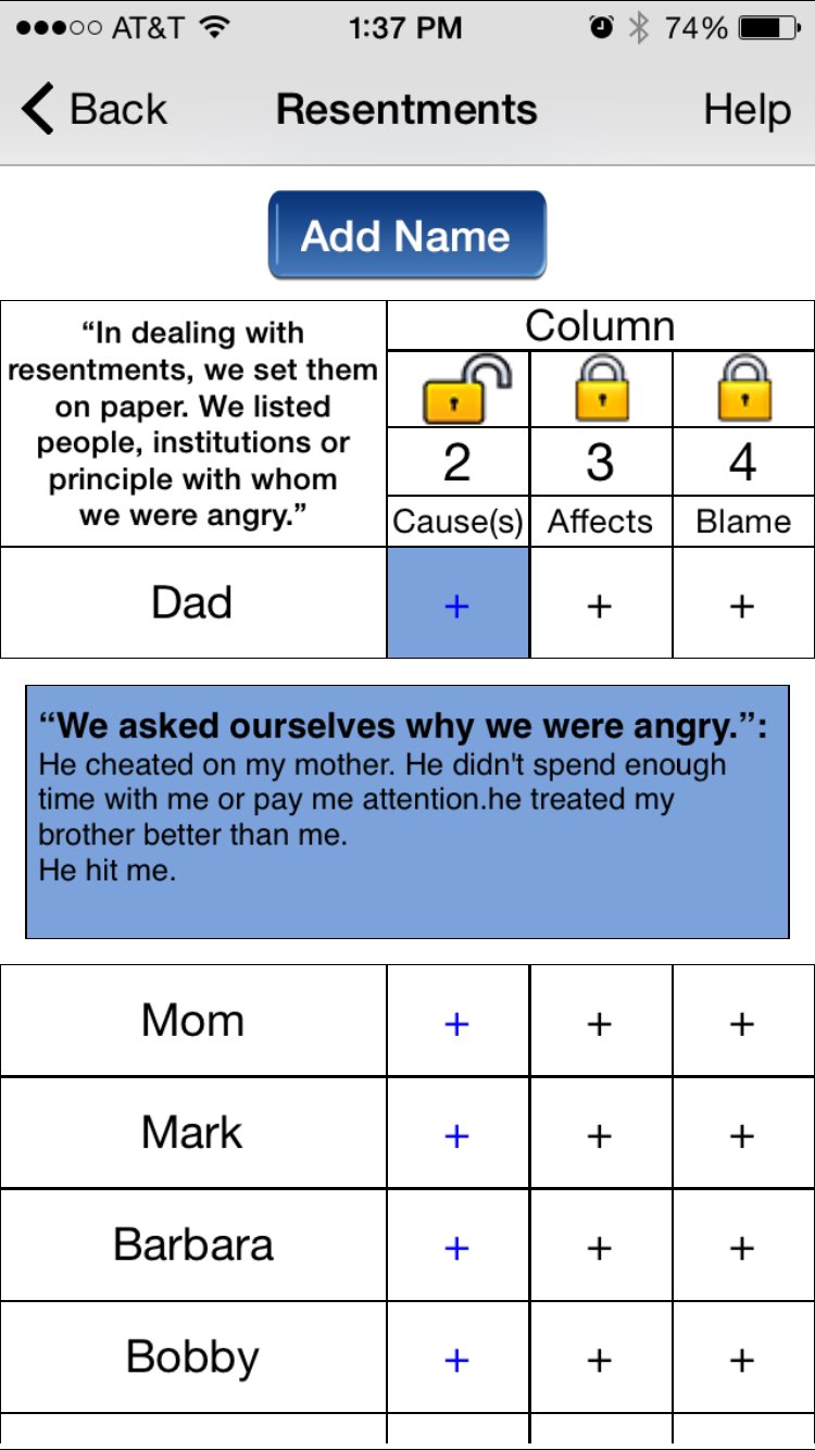 Your sponsor may want you to write out (with pen and paper) your 4th step. If that is the case, you may still utilize the app to collect your inventory information, then after printing it out, copy it over by hand.