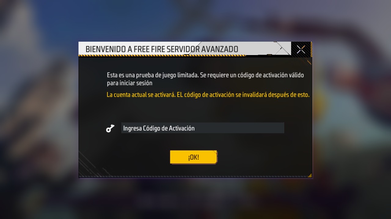4. Instale o APK do Servidor Avançado OB52 e insira seu código de ativação ao iniciar o jogo.