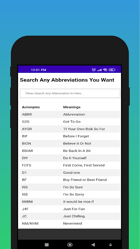 Abreviações com lista de A a Z Você pode pesquisar qualquer abreviação neste aplicativo