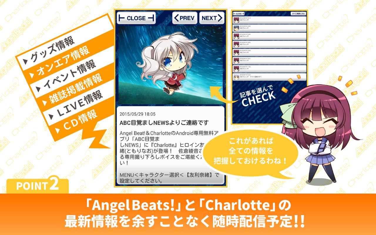 本アプリは課金要素無しの完全無料となっております。『Angel Beats!』『Charlotte』の最新情報もドンドンNEWS配信されますので両作品が気になる方は是非アプリをDLしてみてください。