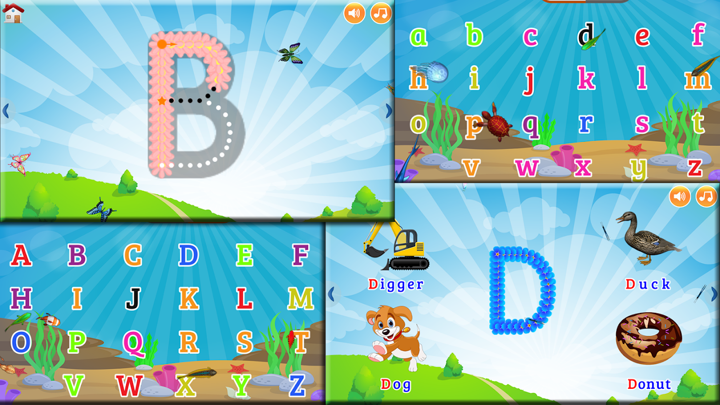 - 8 minigame: letter matching, letter quiz, spelling game, tracing game, bubble pop, memory game and more.