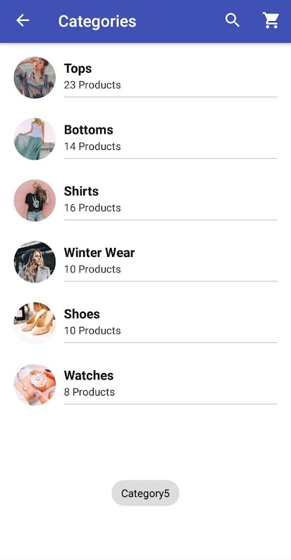 Modelo de interface do usuário de comércio eletrônico para android com estilo de navegação inferior.