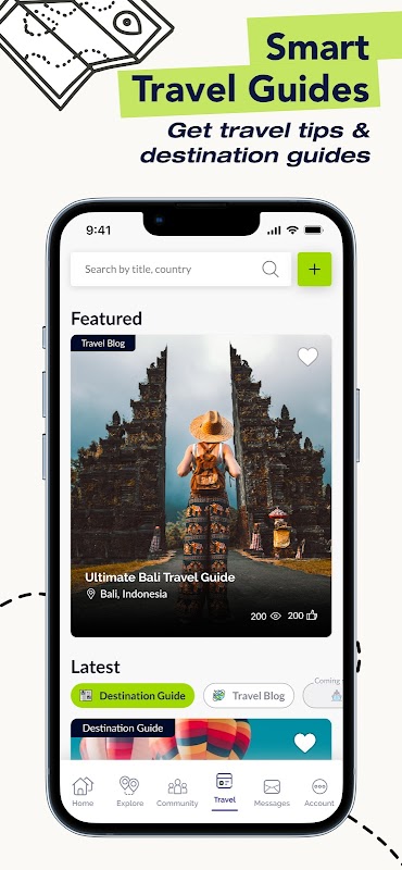 - Encontre viajantes com interesses semelhantes perto de sua localização para sair ou viajar juntos