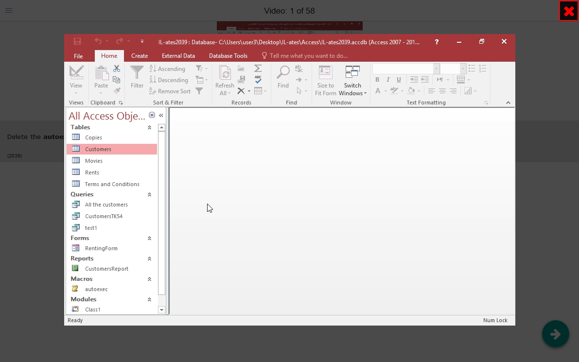 Os candidatos podem acessar o pacote de treinamento completo para poder responder com êxito aos Exames de Certificação não apenas para o MS-Access, mas também para MS-Word, MS-Excel, MS-PowerPoint, Internet e Windows para o Basic ou o Nível avançado de Exames Microsoft-Certiport, Exames ECDL-ICDL, e.tc.