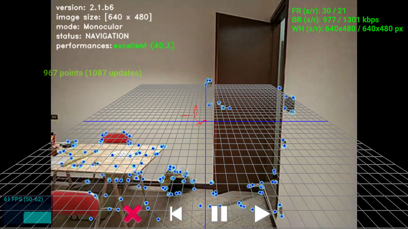 Accuware Dragonfly is a visual SLAM-based system. Dragonfly uses a camera video stream to perform Simultaneous Localization And Mapping (SLAM), a technique described as “the computational problem of constructing or updating a map of an unknown environment while simultaneously keeping track of a device's location within it “. The device in question is a device equipped with a camera, in this case your Android device.