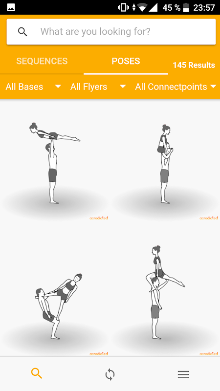Acro Sequência Gerador App - com uma biblioteca de poses, transições e seqüências.