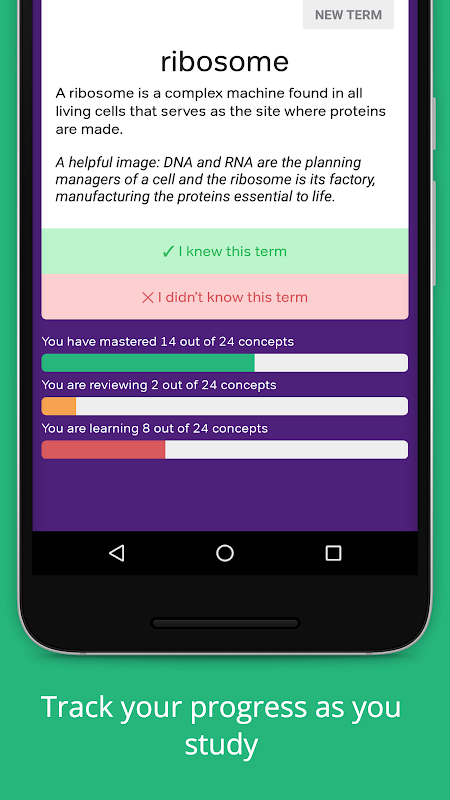 A pesquisa também mostra que a repetição espaçada, ou vendo o mesmo conceito repetido muitas vezes enquanto você preparar é a melhor maneira de praticar recordando informações rapidamente. Esta aplicação prática ACT usa um algoritmo baseado na técnica espaçado Repetição. A Técnica espaçado Repetição vem de pesquisa acadêmica, o que mostra que as memórias são formadas pela exposição repetida a novas informações em intervalos diferentes. Quando você pratica com este ACT prep App, você vai notar que os conceitos são marcados como "dominado", "revisão" ou "aprendizagem". Conceitos que você é "aprender" irá aparecer com mais frequência, até que você dominá-los e, em seguida, eles irão aparecer com menos frequência para que você possa continuar a analisá-los.