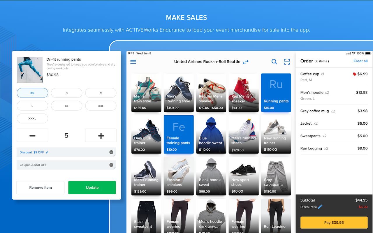 O aplicativo ACTIVE POS permite que organizadores de eventos, funcionários e voluntários façam vendas, processem transações e rastreiem pedidos no local em um evento. Com ACTIVE POS, você pode rapidamente e facilmente: