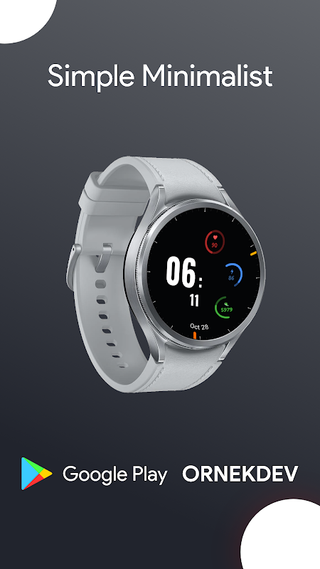 Uma interface elegante e simplificada projetada para fornecer informações essenciais enquanto mantém uma aparência moderna e simples. Perfeito para quem valoriza estilo e função em seu smartwatch Wear OS.