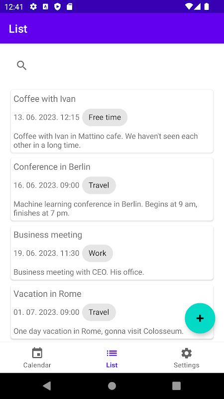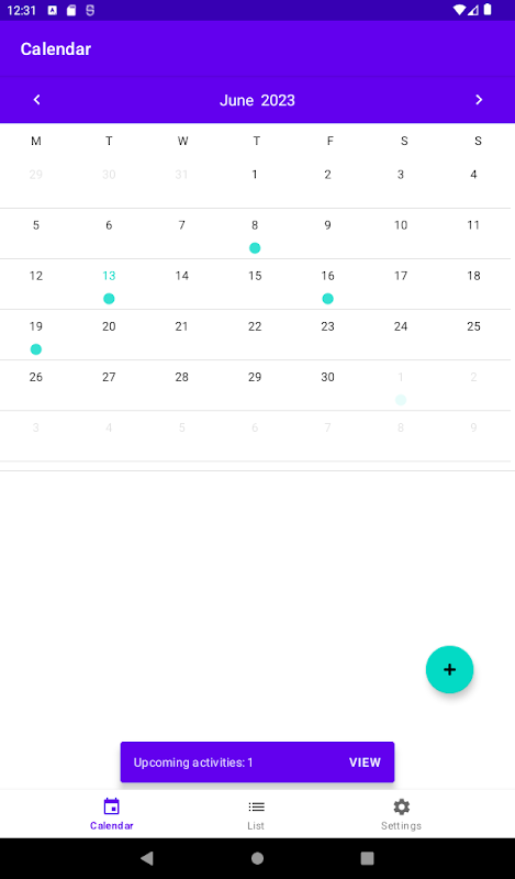Verifique as atividades no calendário ou na lista cronológica e receba notificações das próximas atividades sempre que iniciar o aplicativo.
