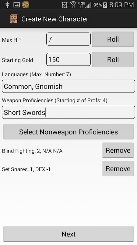 Roll for stats or enter your own, then customize your character as you see fit. Character creation rules from the Player's Handbook are all in place. Once stats are rolled, race choices are set, then classes, and so on.
