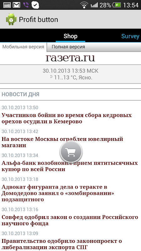 Profit Button - новый и простой сервис, позволяющий добавить в мобильное приложение опрос, рекламу, мобильный лендинг без внесения изменений в дизайне.