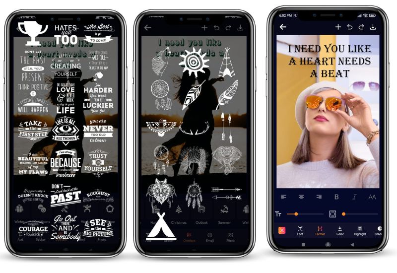 O texto nas fotos facilita a inserção de texto em fotos com estilos e fontes para satisfazer seu design criativo.