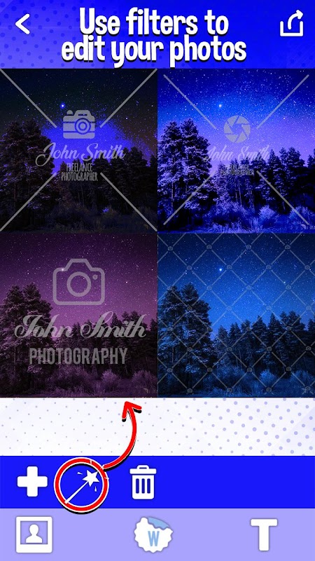 Se você precisa de um texto inteligente na foto com as melhores fontes e na forma elegante de escrever no aplicativo de imagens, então você precisa instalar esta aplicação de marca d'água da foto. Adicione sua própria marca de água do logotipo e texto para fotos em cores diferentes. Você pode aplicar uma assinatura de direitos autorais para fotos em alguns segundos e proteger suas fotos de pessoas que não possuem licença para usá-las. Crie marca d'água, posicione-a em cima da sua imagem e o trabalho esteja pronto! Você ficará impressionado com o que este texto no editor de fotos pode fazer. Intall esta marca de água livre direitos autorais para as suas fotos hoje e aproveite este Marca d'Água em Fotos!