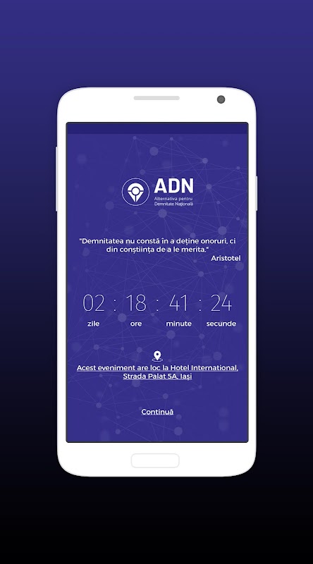 Aceasta aplicatie apartine Alternativei pentru Demnitate Nationala, partid de tip nou, care isi propune sa re-inventeze politica in era digitala