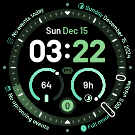Suas características: Face digital, personalizável, múltiplas cores, barra de progresso, personalidade, estilo de tempo, slot de complicação