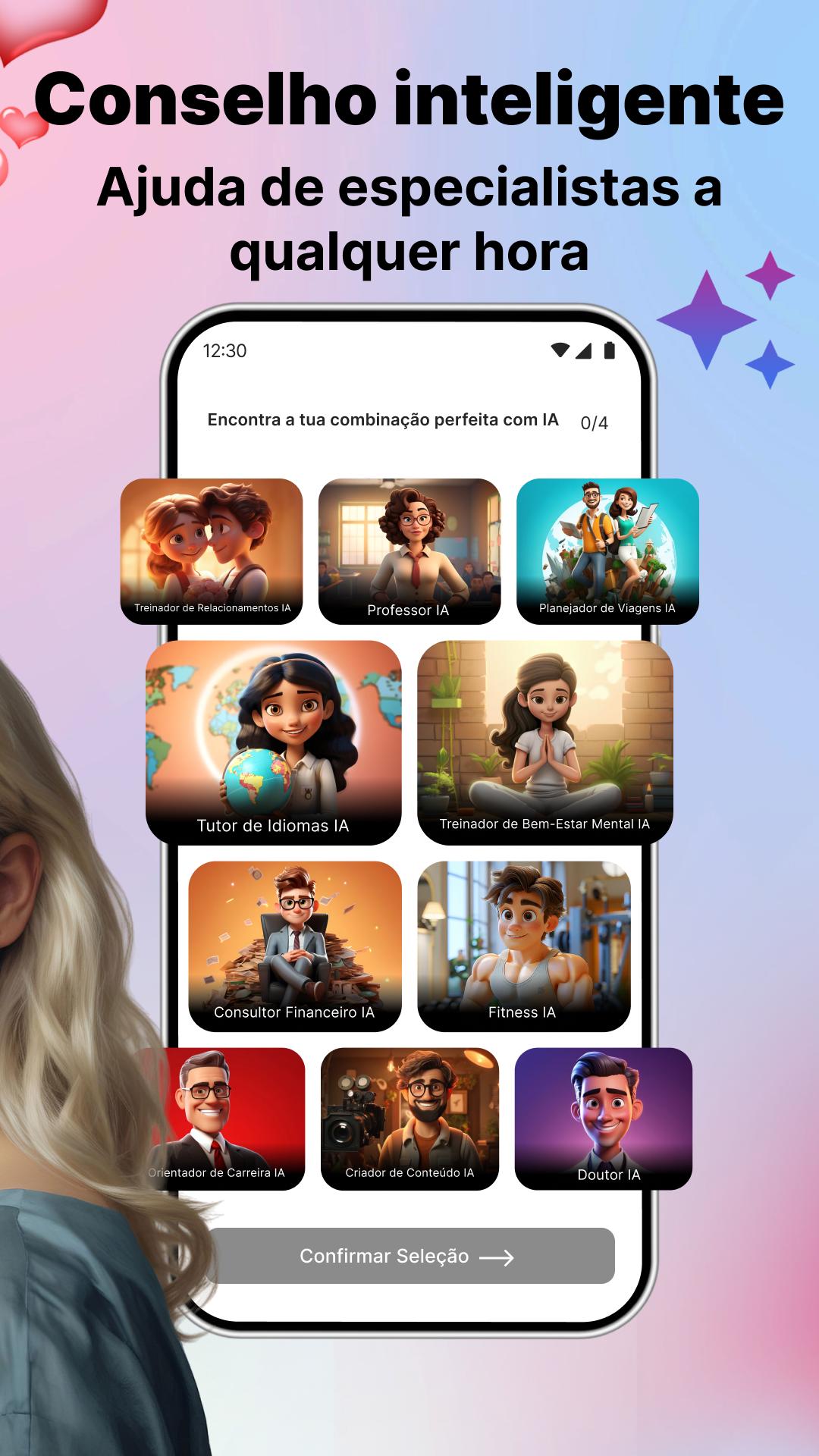 Fortaleça seus relacionamentos! Sejam conselhos amorosos, resolução de conflitos ou dicas de comunicação, nosso aplicativo de inteligência artificial Consultor de IA ajuda você a construir conexões significativas.