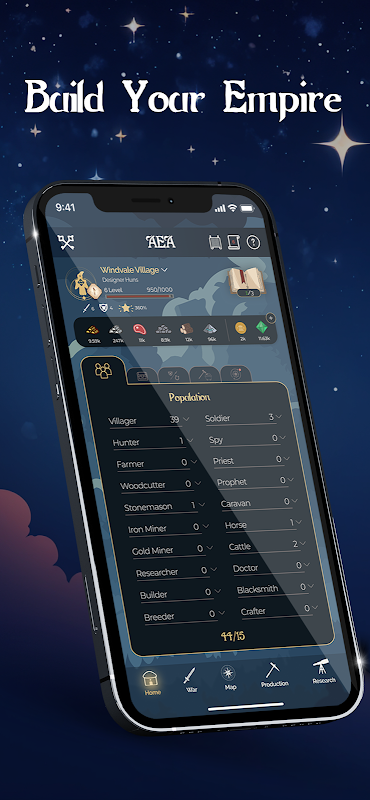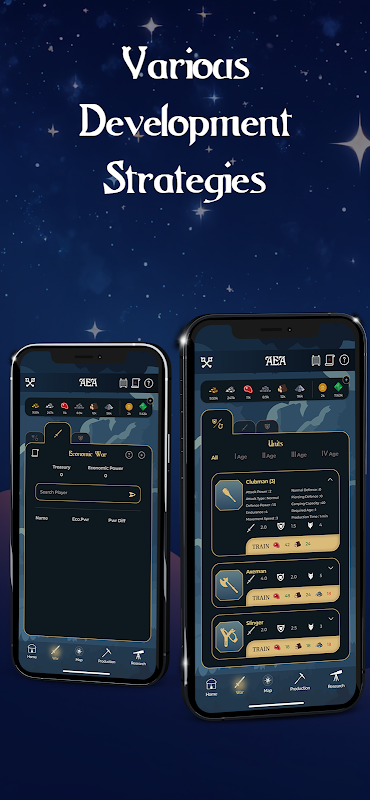 Gerenciamento de Recursos: Mantenha sua produção sob controle e garanta que você tenha o suficiente para treinar soldados e expandir sua influência.