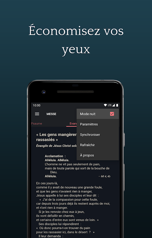 - Aplicativo oferecido de forma voluntária, sem qualquer publicidade (nem rastreador) com o apoio da Associação Episcopal Litúrgica para os países de língua francesa (http://www.aelf.org)