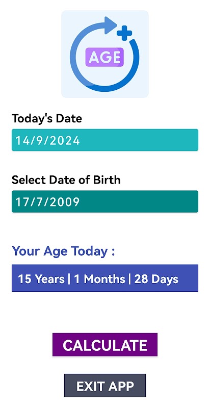 Calcule sua idade instantaneamente inserindo sua data de nascimento e a data de hoje.