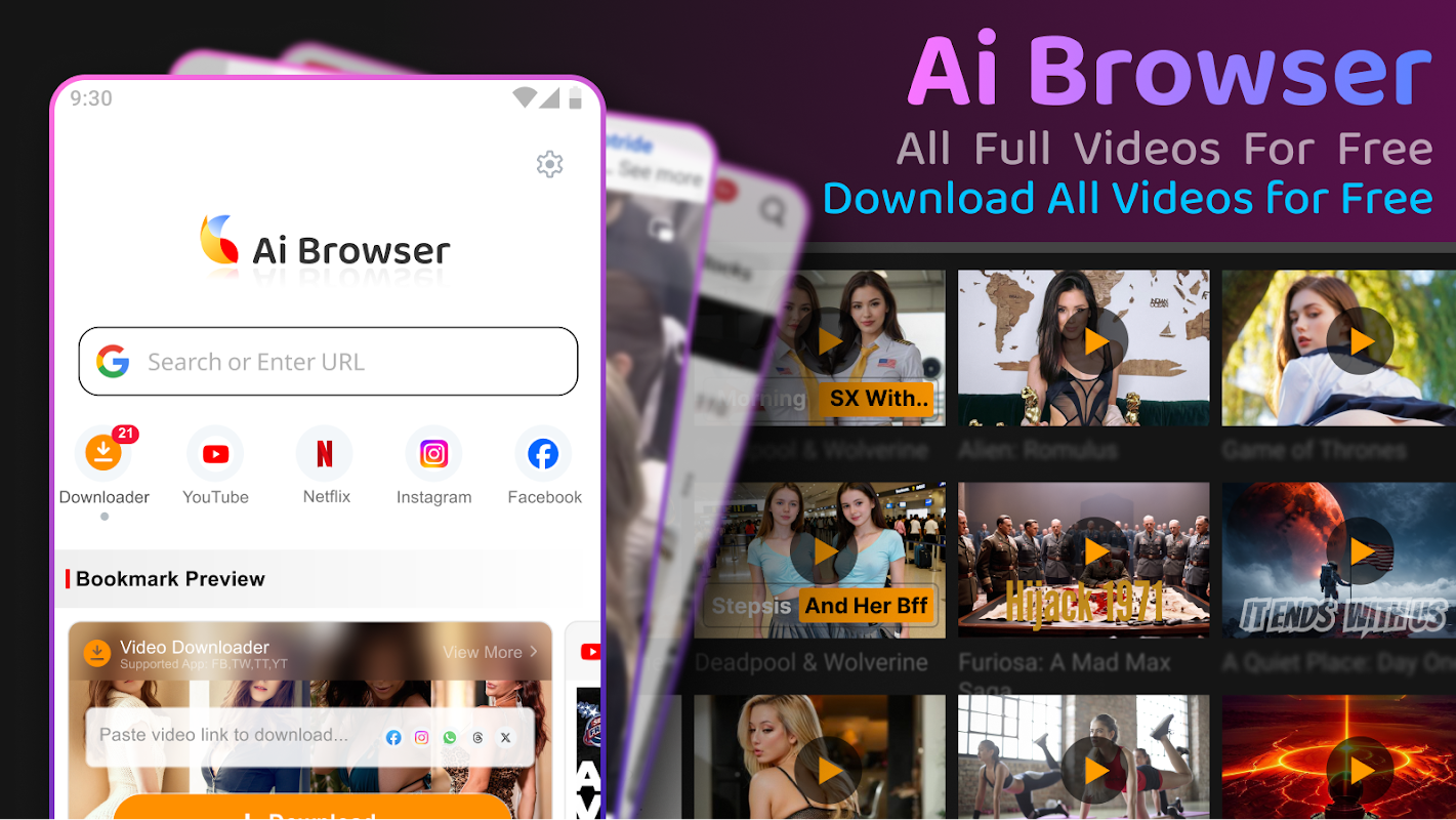 Diga olá ao Ai Browser — o navegador que traz vídeos, filmes e programas na ponta dos dedos. Se você deseja transmitir os sucessos mais recentes, baixar vídeos de mídia social ou mergulhar em uma biblioteca de filmes e programas de TV gratuitos, o Ai Browser tem o que você precisa.