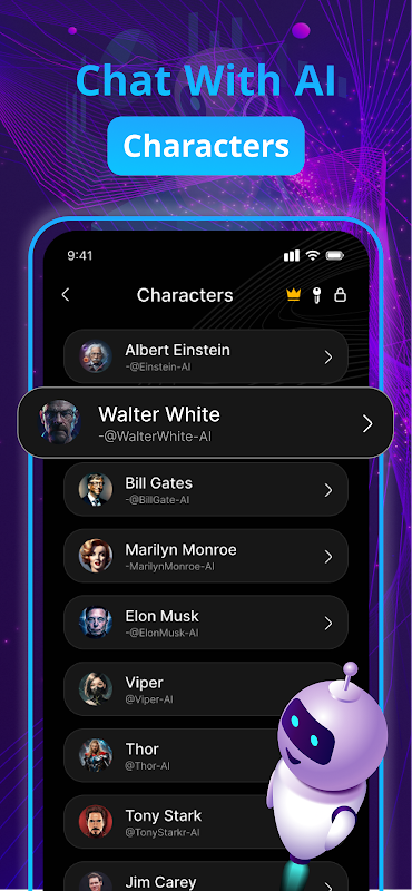 Mergulhe no bate-papo realista de IA de personagens, com personalidades proeminentes como Elon Musk, Bill Gates, Tony Stark e Marilyn Monroe. Mergulhe em conversas dinâmicas e envolventes com nosso chatbot que refletem vividamente os traços e maneirismos únicos dessas figuras icônicas. Nosso recurso Character AI, impulsionado pela poderosa tecnologia AI ChatGPT, garante uma interação autêntica e incomparável que transcende o comum. Explore as mentes de figuras históricas, celebridades e personagens fictícios adorados pela IA. Baixe agora e embarque em uma extraordinária jornada de bate-papo!