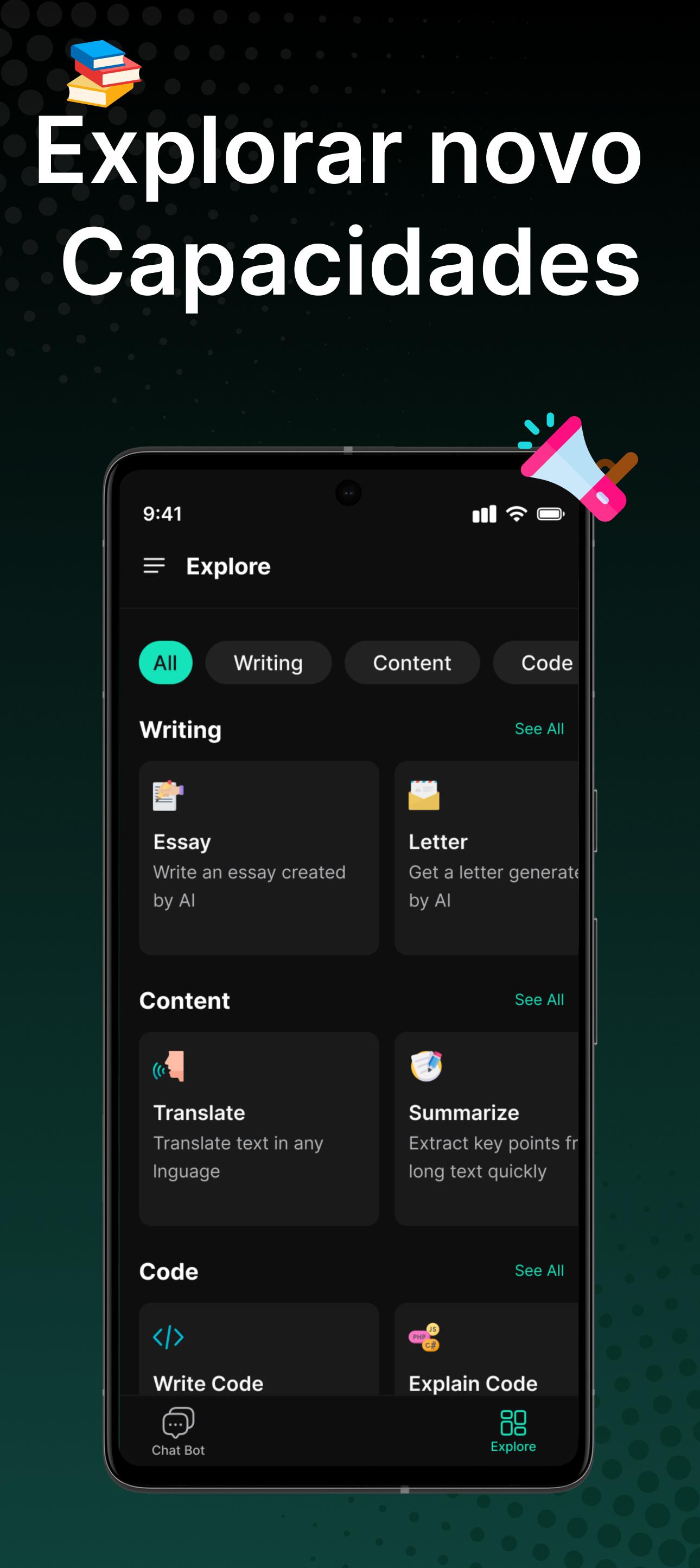 Enfrente qualquer tarefa de escrita com facilidade. Liberte a sua criatividade com o bot AI Chat e o assistente de redação conduzido por Chat GPT e GPT-4o. Escreva um poema, uma letra de música rap ou uma história.