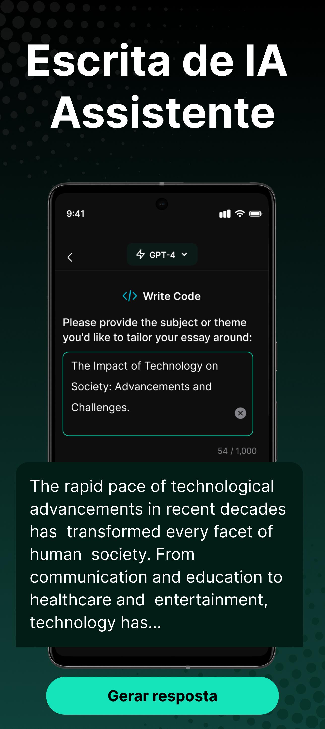 Assistente de redação de IA, o Chat GPT +, GPT 3, GPT-3.5 Turbo e assistente de chatbot de IA com tecnologia GPT-4 do Open ai é sua fonte de referência para conversar sobre qualquer assunto que você desejar.