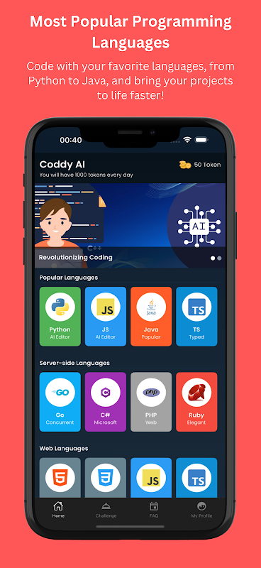 Suporta Editor TypeScript, Editor JS, Compilador Swift, Kotlin IDE, Go IDE, Go Compiler, PHP Compiler, Python IDE, Python Compiler, C# IDE e AI Code Generator, bem como compiladores para Java, C#, Go e C++, é uma solução completa. Seu compilador online garante fluxo de trabalho ininterrupto, permitindo fácil depuração e teste de scripts Python, programas Java, aplicativos C# e páginas HTML diretamente de seu dispositivo móvel. O AI Code Editor torna a codificação móvel poderosa e eficiente, cobrindo todas as linguagens com precisão. Com o Editor de Código AI.