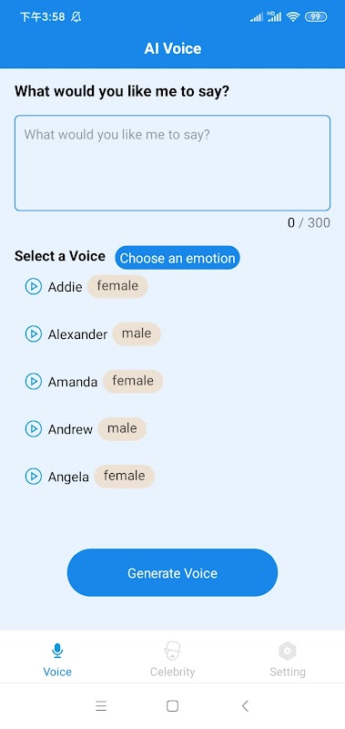 • Opções de Personalização: Ajuste a emoção, o tom e o tom da voz para criar sua própria voz de IA personalizada.