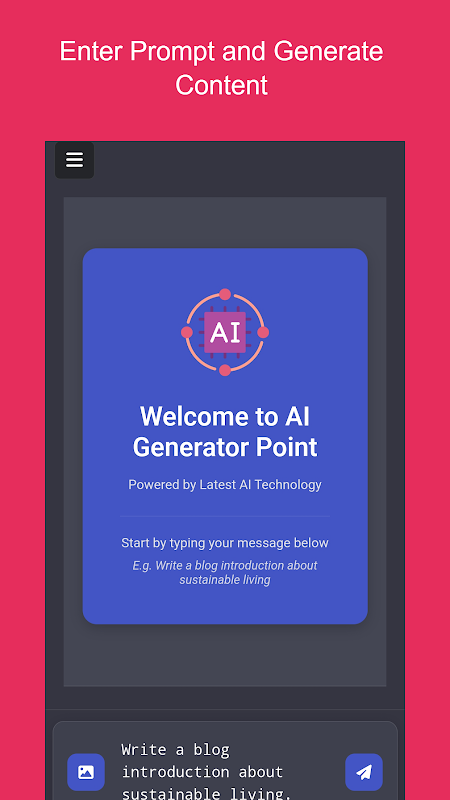 AI Generator Point é o seu melhor assistente de escrita com tecnologia de IA que ajuda você a criar conteúdo de alta qualidade em segundos. Se você precisa de introduções em blogs, legendas em mídias sociais, e-mails comerciais ou histórias criativas, este aplicativo torna a geração de conteúdo simples e fácil.