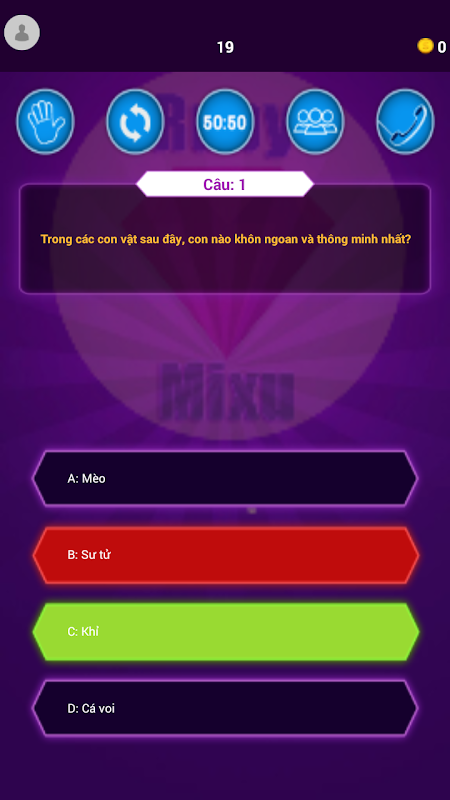 - Hệ thống câu hỏi đa dạng, phong phú, được sắp xếp theo độ khó tăng dần để thử trí tuệ của người dùng