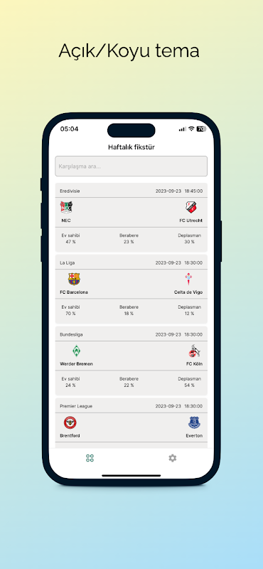 Com o apoio da inteligência artificial, analisa os possíveis resultados das partidas de futebol e retorna resultados percentuais.Exibe as previsões das partidas semanais analisadas com inteligência artificial.