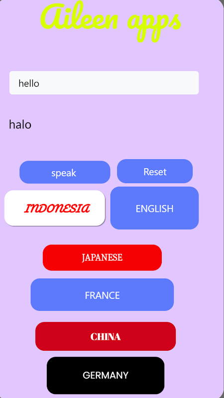 Este aplicativo é um tradutor multilíngue (indonésio, inglês, chinês, japonês, alemão, francês), adequado para viajantes.