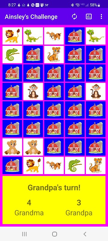 Selecione entre diferentes temas (animais, flores ou Natal). O modo single-player tem cinco níveis diferentes de dificuldade que determinam a capacidade do oponente simulado (computador).