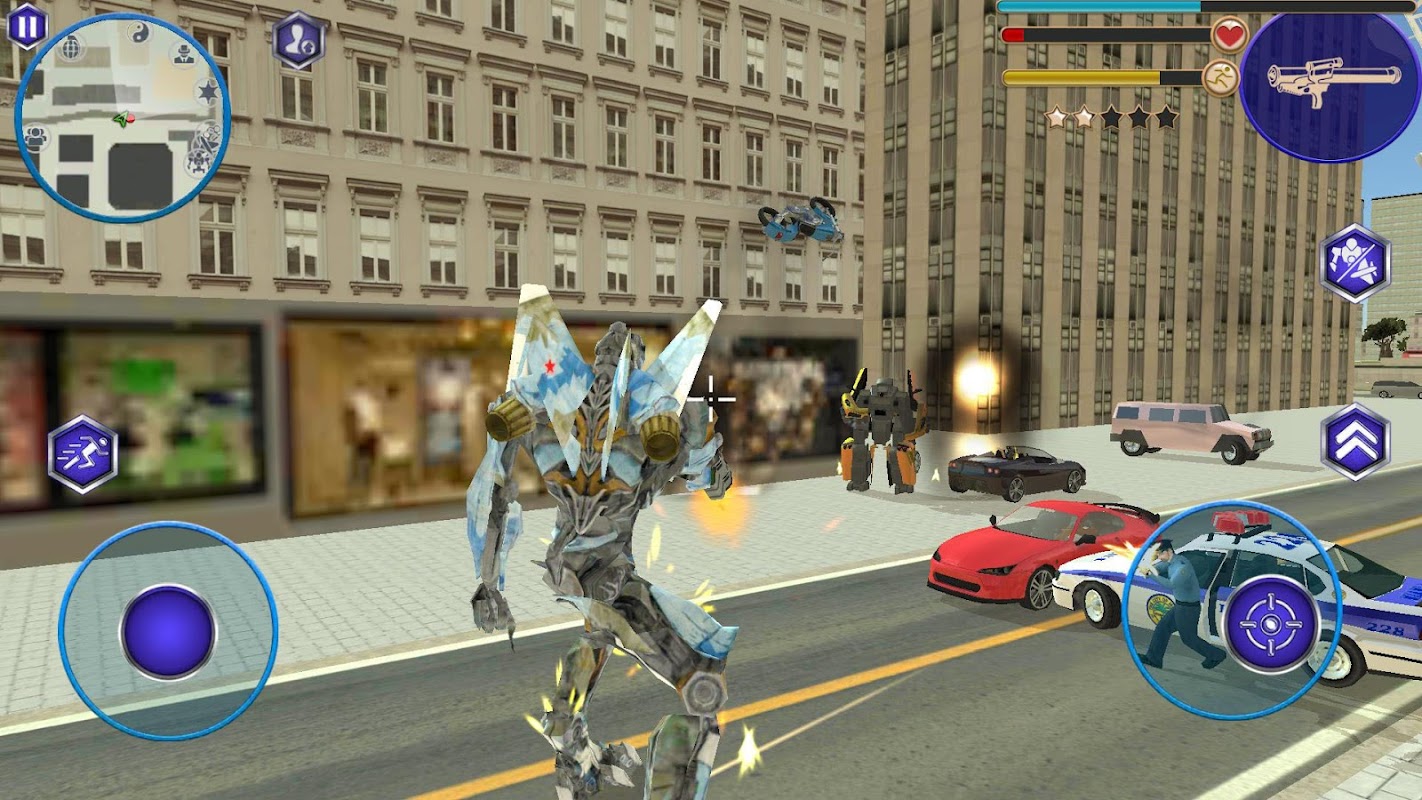 Você pode ter jogado muitos futuros jogos de robô com transformação de super robô, mas este simulador de robô a jato tem várias tarefas de destruição do inimigo e missões aterrorizantes de contra-ataque ao contrário de qualquer outro jogo de jato transformador. Você está pronto para lutar contra os super robôs na batalha futurista da polícia aérea? Torne-se um avião para se transformar com agilidade para matar os rivais nesta mais recente adição aos jogos de transformação de robôs espaciais. Deixe a busca começar como um robô voador lutando em um dos melhores jogos de robô disponíveis na loja, você deve controlar uma máquina construída para a guerra, para lutar no ar e para proteger a terra do mal. Mesclando as táticas complexas envolvidas em jogos de robô de transformação com prazeres de jogos de robô aéreo e jogos de robô voador, este simulador de robô voador permite assumir o controle da força policial aérea. Deslize sobre enormes arranha-céus com suas asas de metal para atirar no inimigo no chão e ganhar o céu com os jatos em transformação. Eleve-se como um herói, surja um salvador e ganhe a vitória sobre as máquinas. Se isso o excita e você deseja controlar caças e helicópteros e transformar robôs,