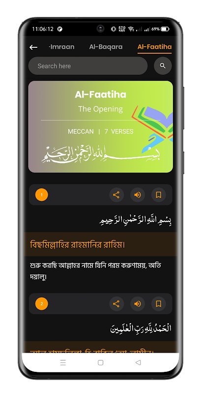 Os recursos são fornecidos neste aplicativo Al Quran com Bangla.