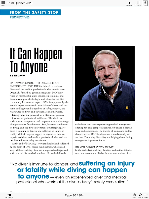 A revista Alert Diver, a principal publicação do setor, apresenta o conteúdo principal da DAN.