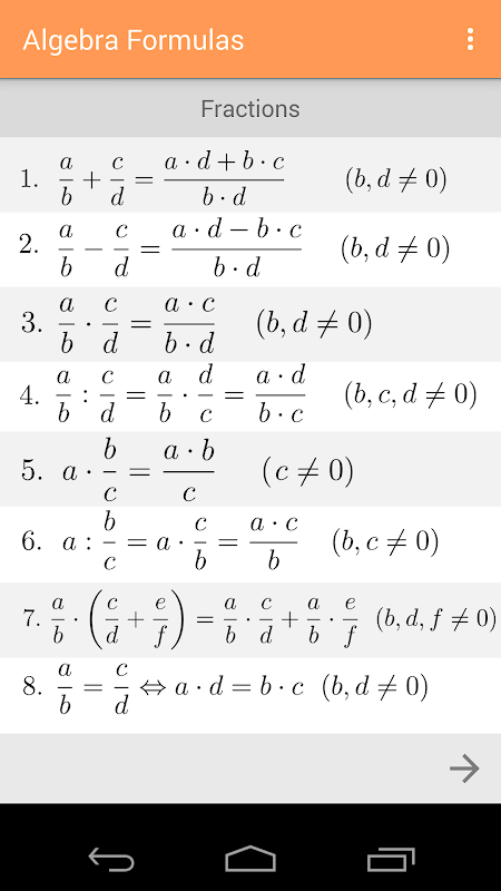 Algebra formulas é um aplicativo gratuito para ajudar a resolver seus problemas de álgebra.