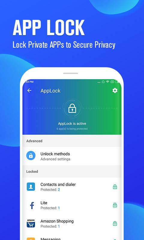 Proteção superior de segurança com o gravador de chamadas, limpador de lixo, antivírus, acelerador para manter seu telefone seguro, rápido e otimizado como se fosse novo.