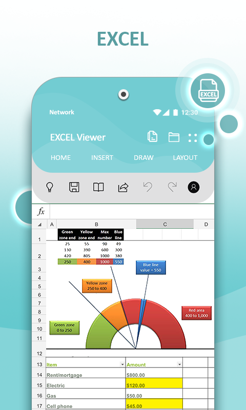 Com vários recursos avançados, o usuário do aplicativo Docx pode ler os documentos organizados de forma eficaz devido ao suporte ao leitor de arquivos. Com um leitor de documentos, o usuário pode ler arquivos Xcel salvos em seus smartphones nos formatos Xls e Xlsx, incluindo principalmente planilhas, planilhas e arquivos Xcel.