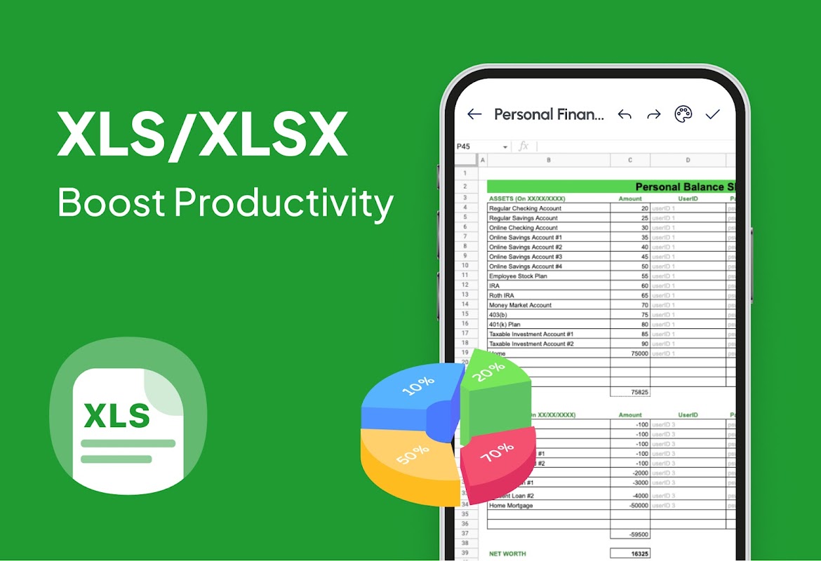 - Visualize planilhas do Excel (XLS/XLSX): Acesse fórmulas e tabelas de dados com rapidez e facilidade.