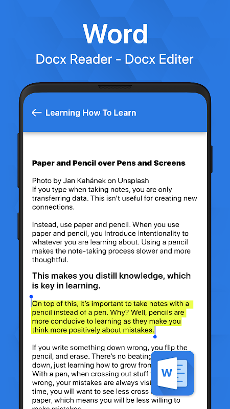 ✔ Leitor de Docx ou visualizador de Docx com rolagem mais rápida e suave.