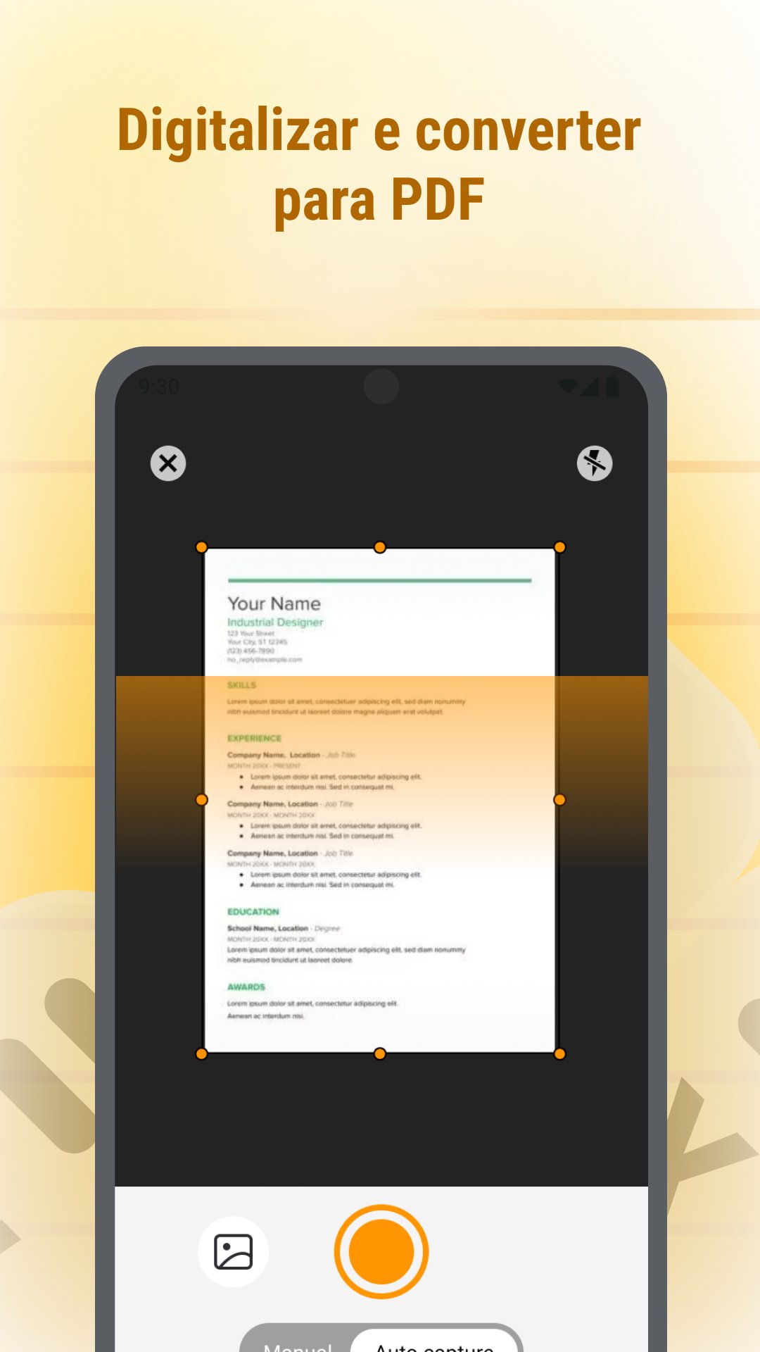 • Digitalize documentos usando a câmera